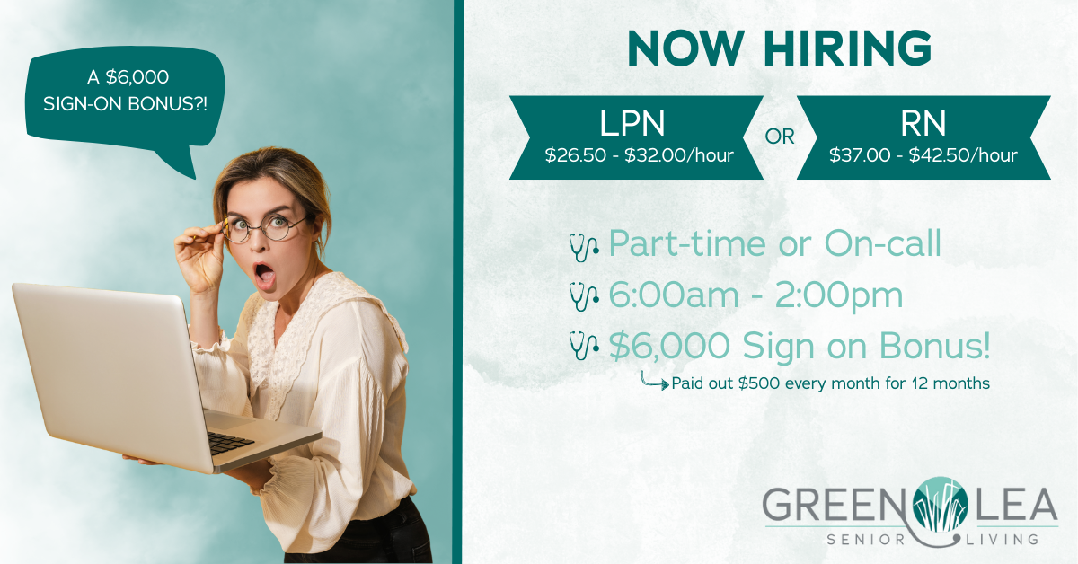 Start a meaningful career as an LPN or RN at Green Lea Senior Living!